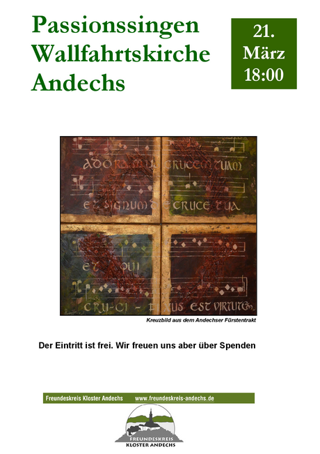Die Volksmusiksingen werden seit langem vom Freundeskreis organisiert und finden in der Wallfahrtskirche statt. Sänger und Musikanten kommen gerne nach Andechs. Die Veranstaltungen sind kostenlos. Die Besucher werden aber um eine freiwillige Spende gebeten.